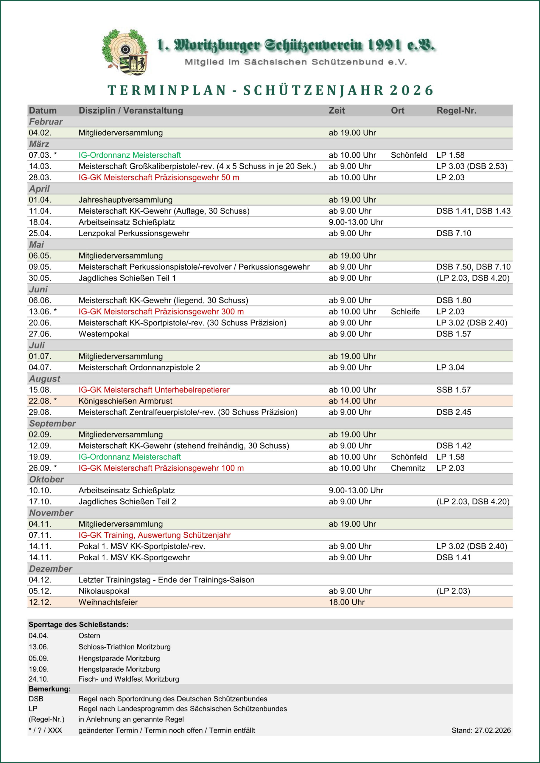 Terminplan – Schützenjahr 2026 (Stand: 27.02.2026)
