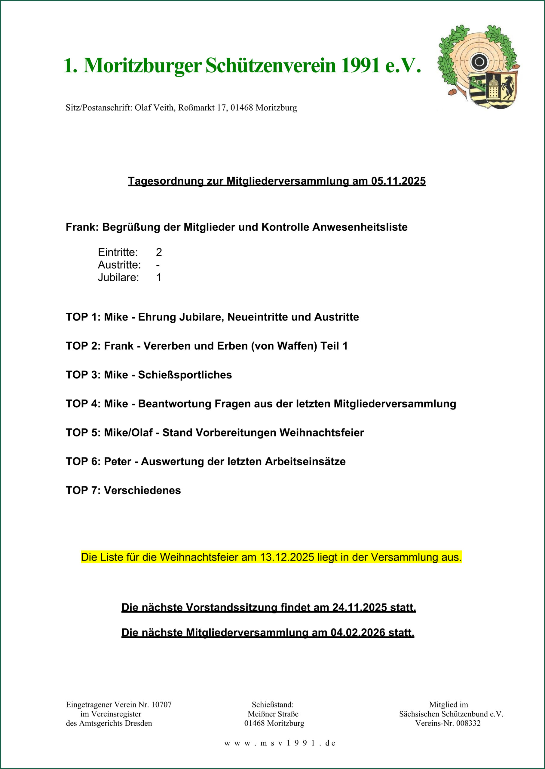 MITGLIEDERVERSAMMLUNG & TAGESORDNUNG